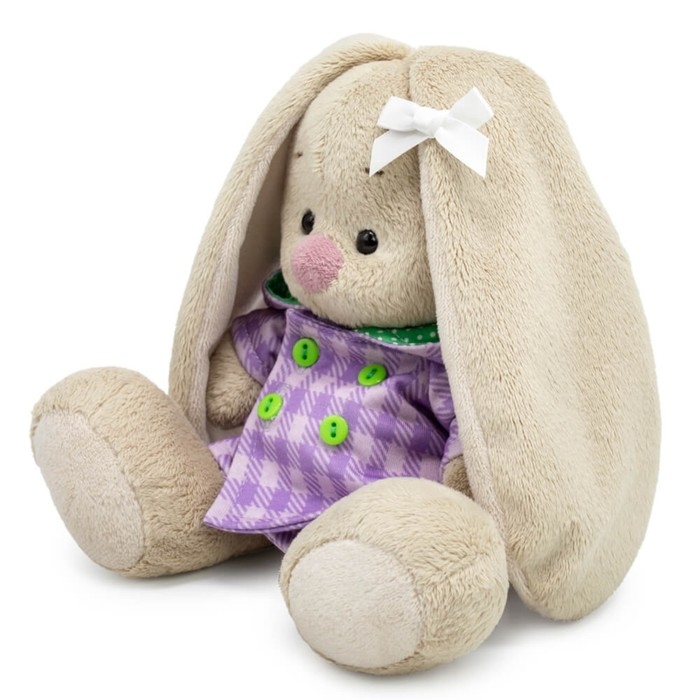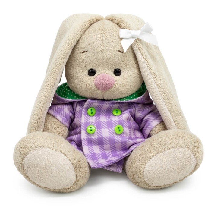 Мягкая игрушка «Зайка Ми» — очаровательная модница в клетчатом пальто с капюшоном. Такой подарок порадует девочку и подарит радостные эмоции. Стильная зверюшка разовьёт фантазию малышки и станет отличным компаньонам по играм.