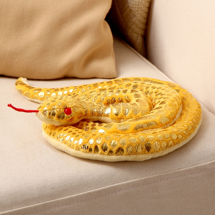 Мягкая игрушка «Змея», цвет жёлтый, с золотыми вставками, 80 см