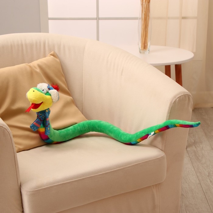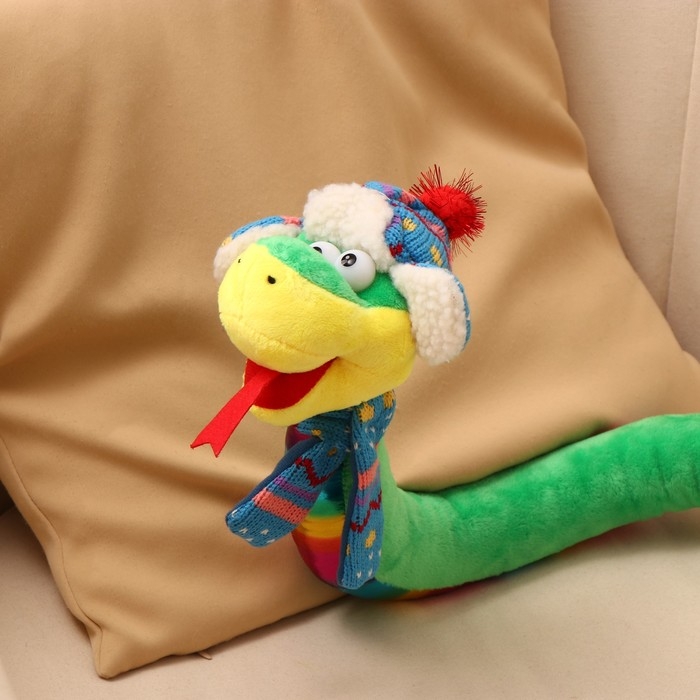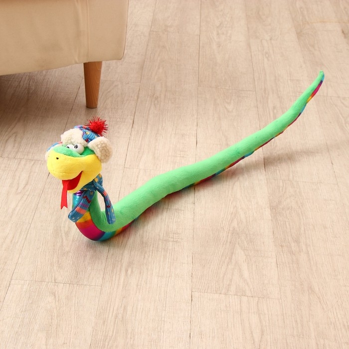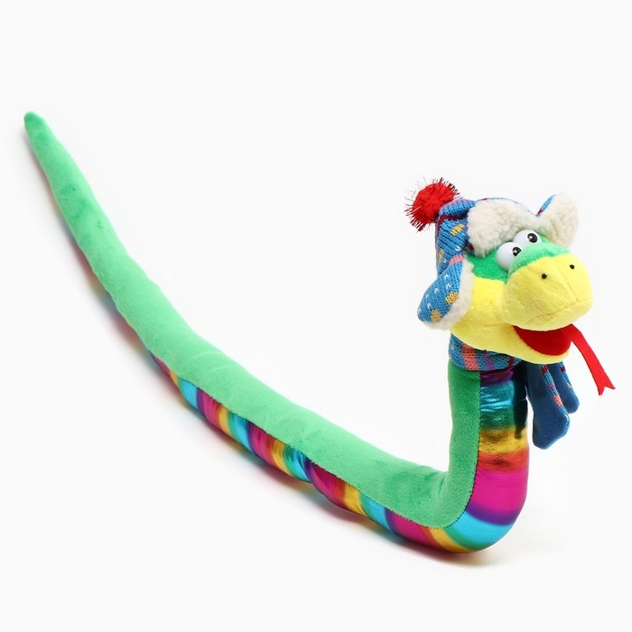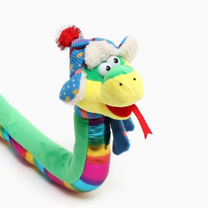 Мягкая игрушка «Змея», с разноцветым животиком, в новогоднем колпаке, 95 см