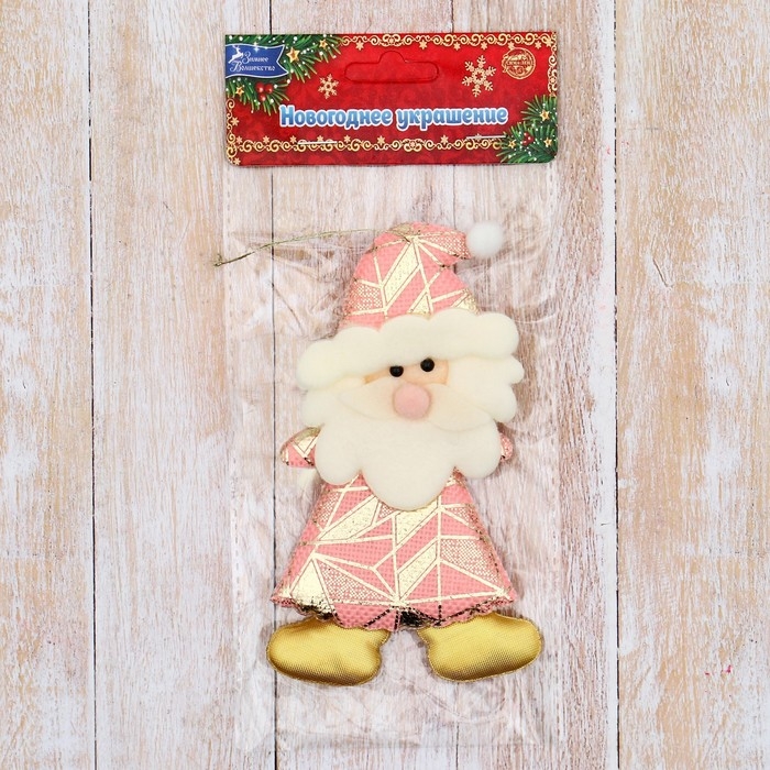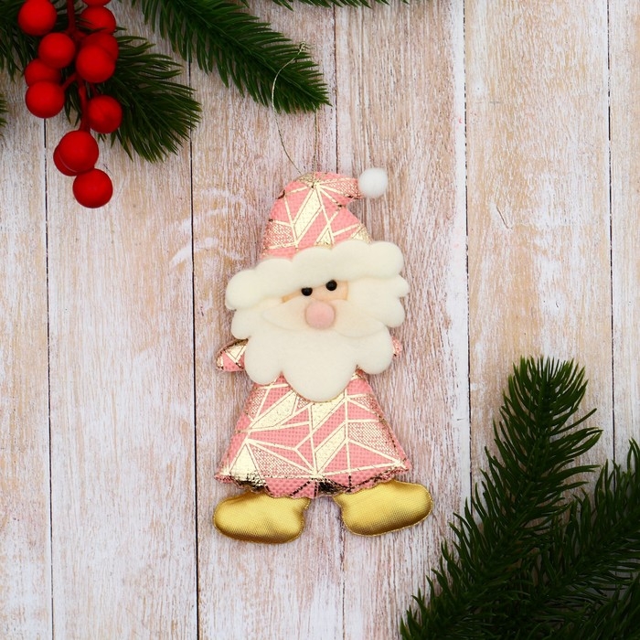 Мягкая подвеска "Дед Мороз в костюмчике с геометрическим узором" 6х12 см, розовый