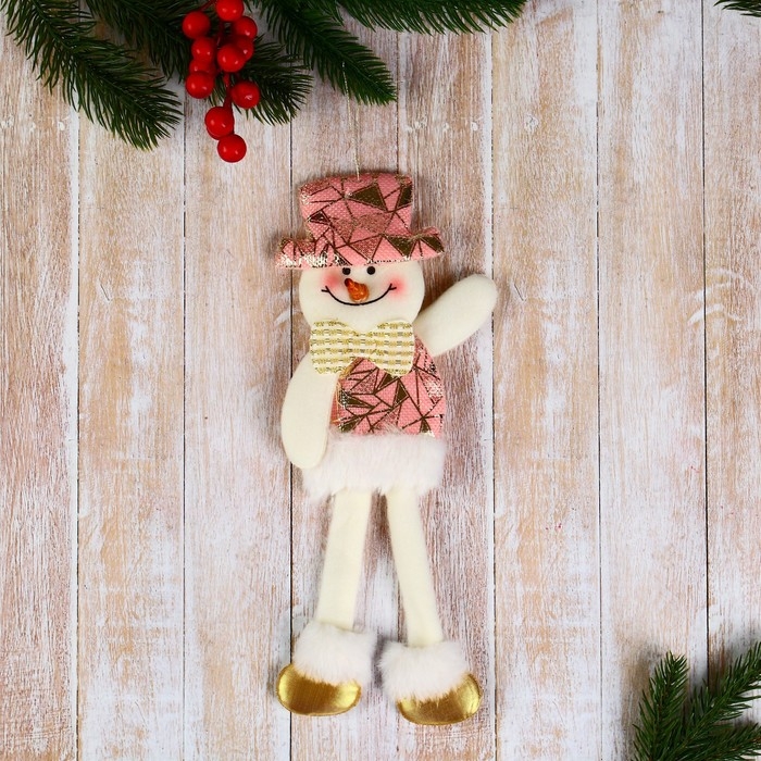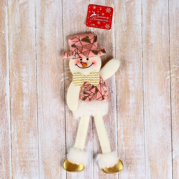 Мягкая подвеска "Снеговик в блестящем костюмчике, длинные ножки" 8х27 см, розовый