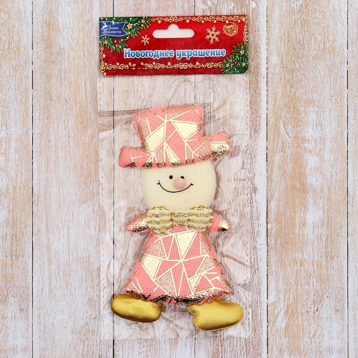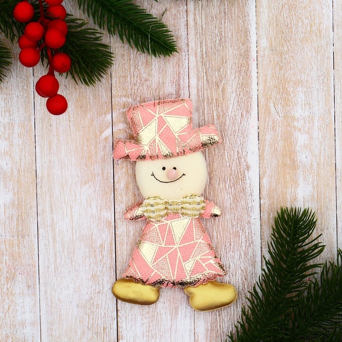 Мягкая подвеска "Снеговик в костюмчике с геометрическим узором" 6х13 см, розовый