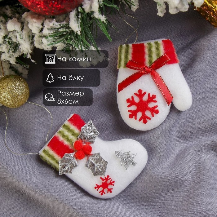 Мягкие подвески с милыми деталями помогут проникнуться духом торжества. Украшение поможет преобразить как праздничную ёлочку, так и другие предметы и поверхности стильного новогоднего интерьера. Мягкая подвеска "Варежка и сапожок" (набор 2 шт) 8 см, белый сделает праздник уютным, также декор может послужить отличным подарком в канун Нового года.