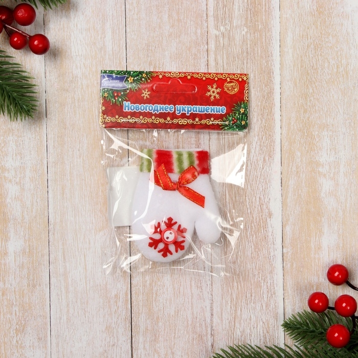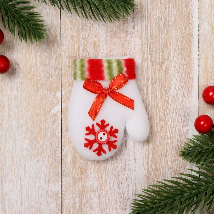 Мягкий магнит "Варежка со снежинкой" 8х6 см, белый
