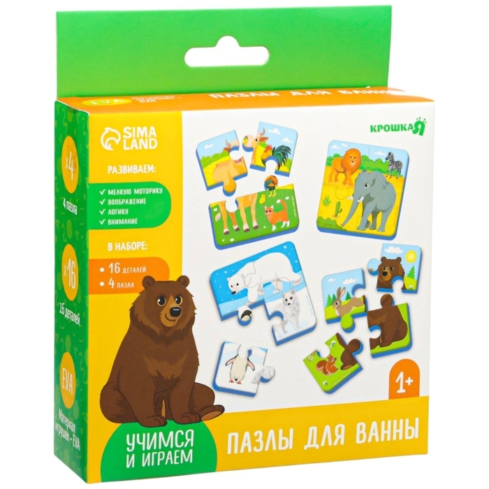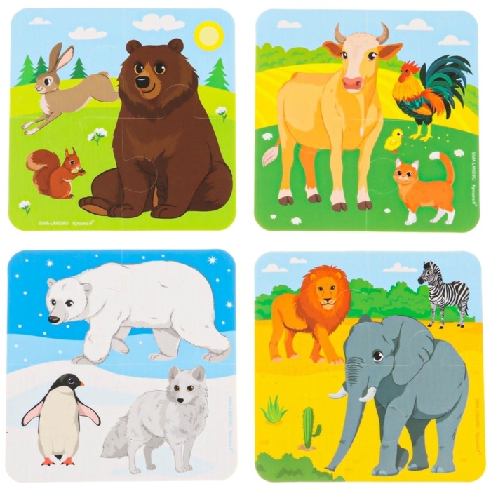 Мягкий пазл для малышей «Животные мира», 16 деталей, Крошка Я