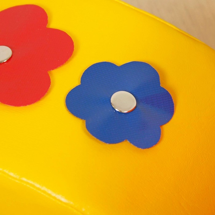 Изделие состоит из поролона и полностью обтянуто винилискожей, не содержит жёстких конструкций, что обеспечивает высокую надёжность и безопасность при эксплуатации. Лучики крепятся к пуфу липучками, поэтому их без труда можно переставлять.