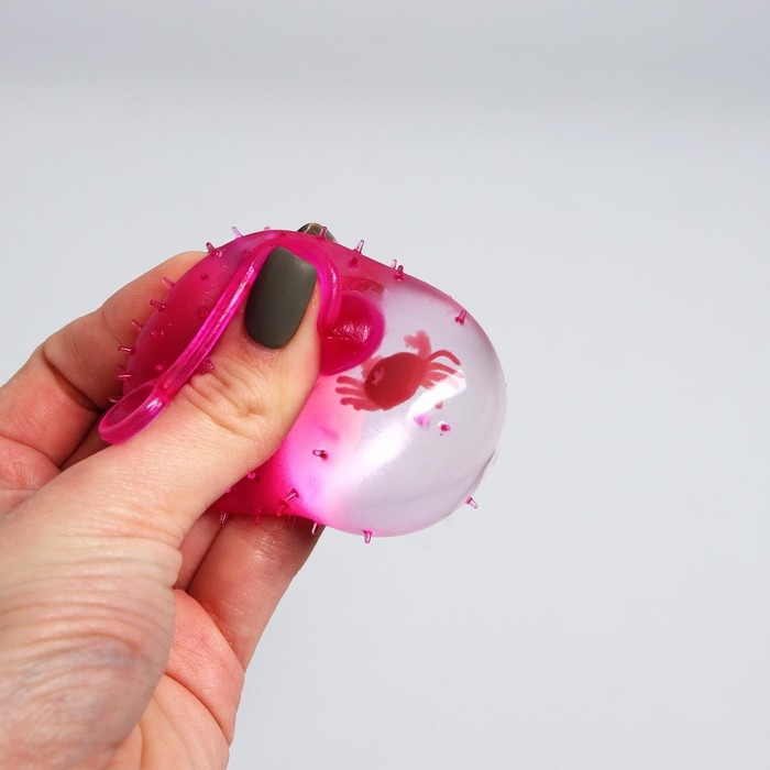 - Внутри мялки находится водный наполнитель. Разминая его, ребёнок потренирует мелкую моторику рук.