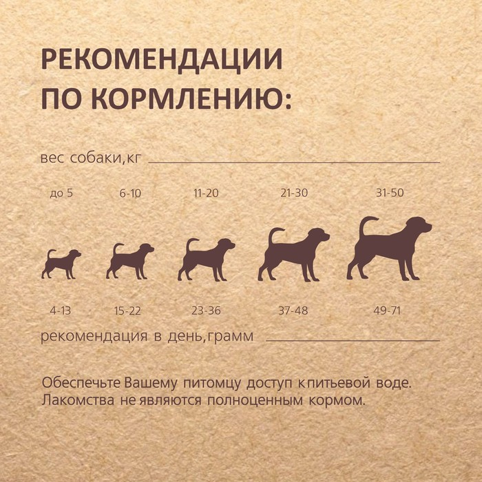 Состав: мука из цельной пшеницы 63%, говядина 15%, масло растительное 7%, яблоко 5%, можжевеловая ягода 5%, брусника 5%.