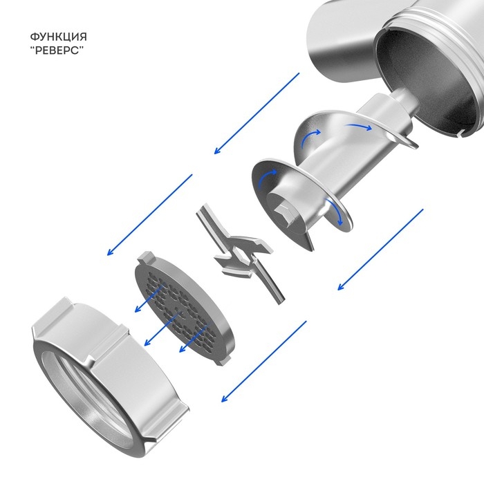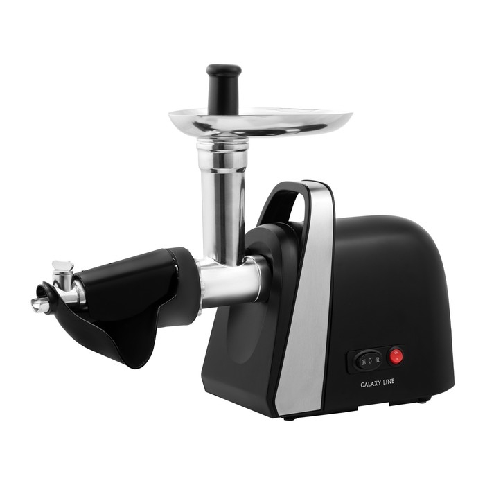 Мясорубка Galaxy LINE GL 2419, 1600 Вт, 1.5 кг/мин, реверс, 6 насадок, чёрно-серебристая