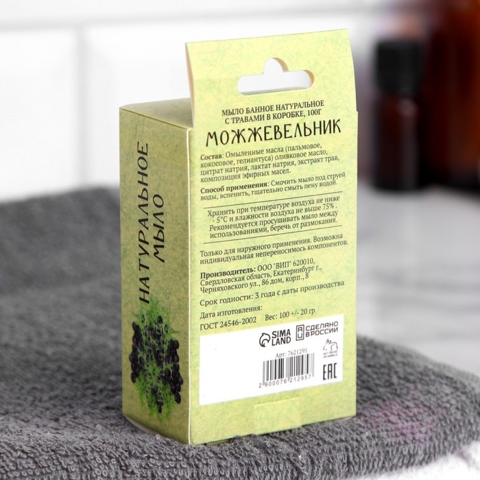 Мыло банное натуральное с травами в коробке "Можжевельник" 100 г Добропаровъ