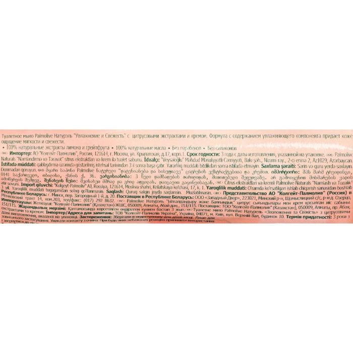 Туалетное мыло Palmolive Увлажнение и Свежесть с цитрусовыми экстрактами способствует увлажнению вашей кожи. Формула с содержанием увлажняющего компонента придает коже ощущение мягкости и свежести. Побалуйте свою кожу!