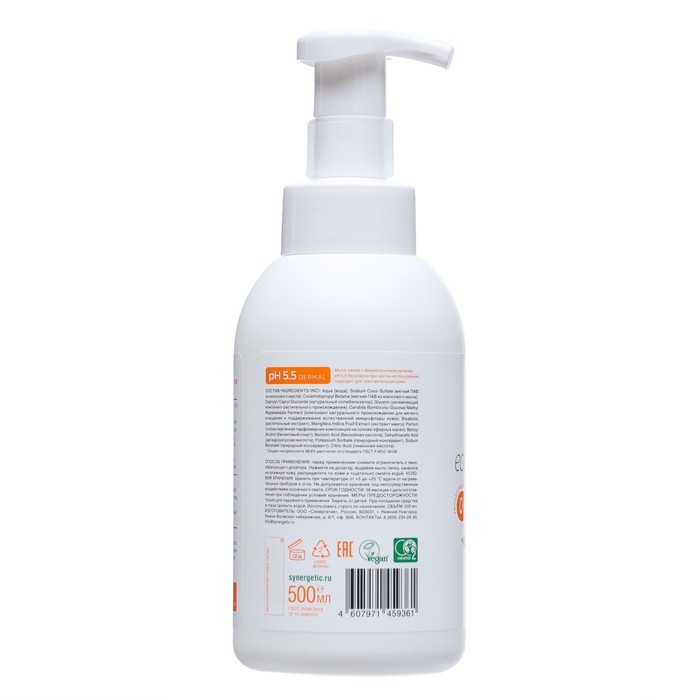 Мыло-пенка детское, Synergetic "Сочное манго", гипоалергенное, 500 мл
