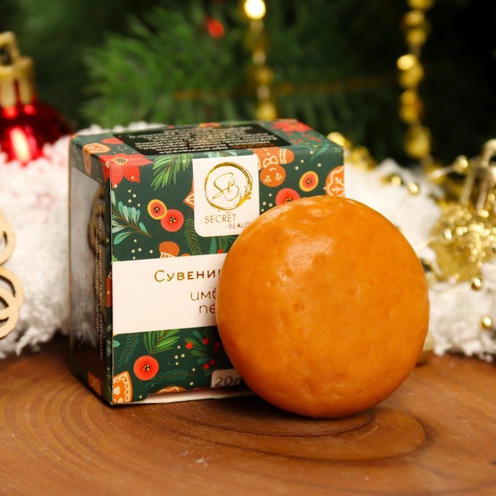 Сувенирное мыло станет необычным, а главное полезным подарком на Новый год. Мыло косметическое бренда Secret Beauty с насыщенными натуральными ароматами не только заботится о чистоте кожи, но и имеет потрясающий, свежий и манящий аромат имбирного печенья и корицы. Бережно очищает кожу, оставляет ощущение свежести и лёгкости, оказывает антисептическое и смягчающее действие. Мыло создано из натуральных растительных масел, без применения синтетических компонентов и искусственных ПАВ'ов. Не вызывает сухости, стянутости и раздражения кожи.