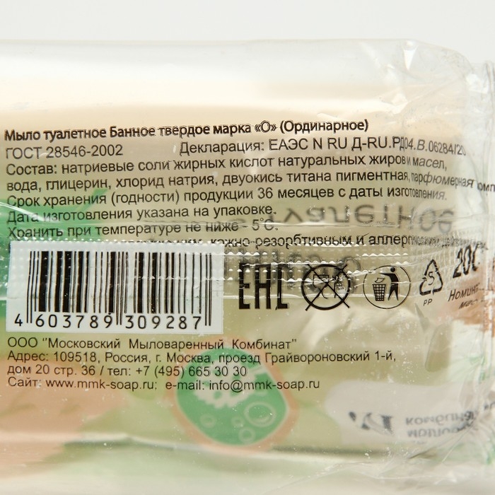 Мыло туалетное 200 гр. "Банное" в цветной обертке флоупак марки Ординарное