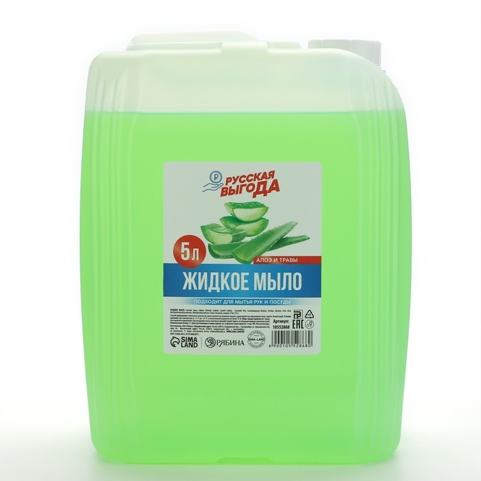 Мыло жидкое кухонное, 5 л (5000 мл), аромат алоэ и травы, РУССКАЯ ВЫГОДА