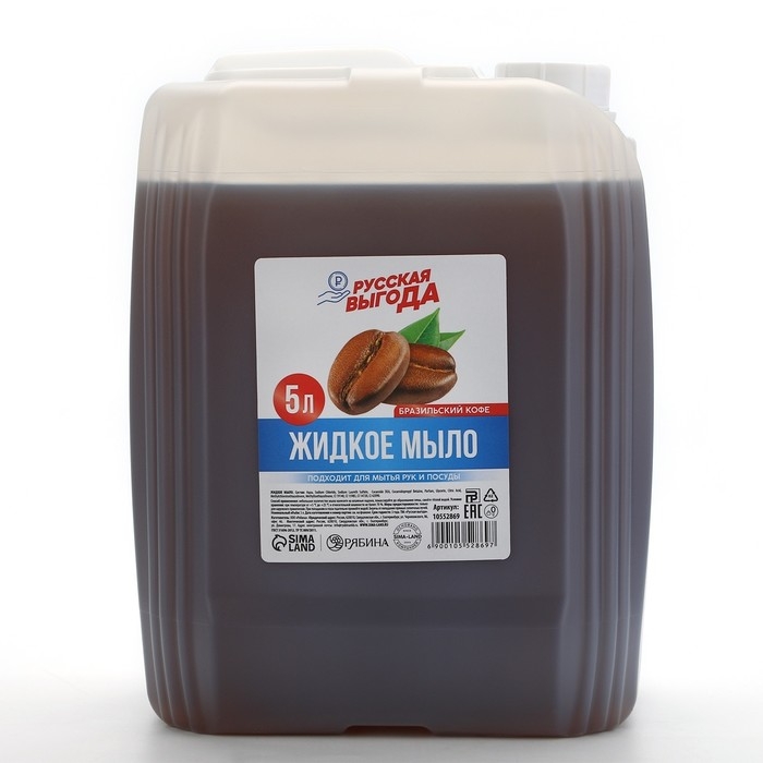 Мыло жидкое кухонное, 5 л (5000 мл), аромат бразильского кофе, РУССКАЯ ВЫГОДА