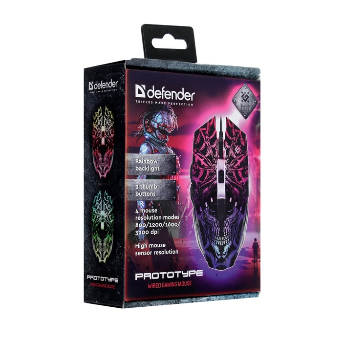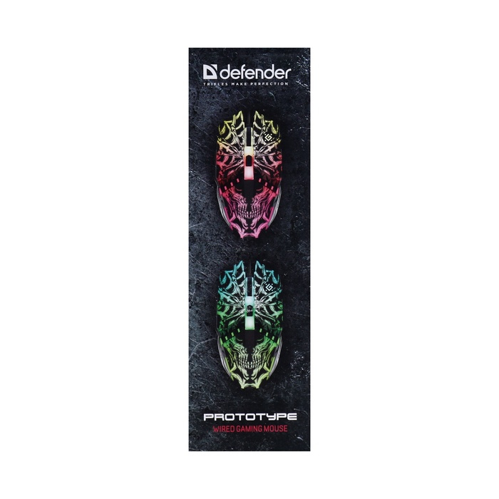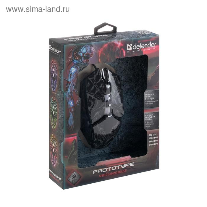 Мышь Defender Prototype GM-670L, игровая, проводная, 6 кнопок, подсветка, 3200 dpi, USB, чер