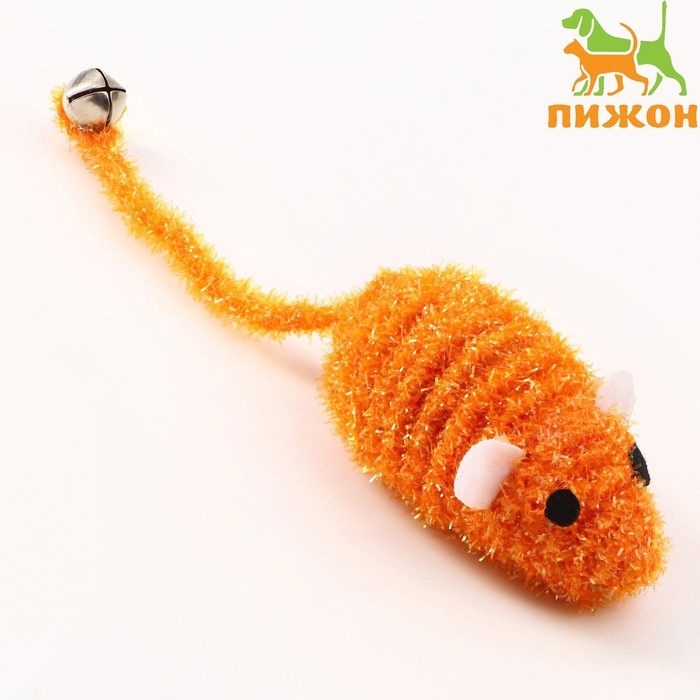 Мышь меховая "Пушистик" с перьями 7,5 см, микс цветов