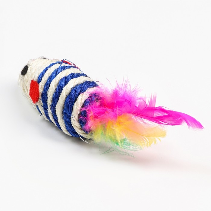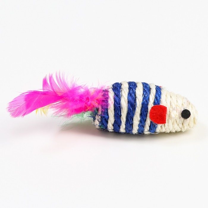 Игрушка сизалевая "Длинная мышь", 14,5 см, синяя