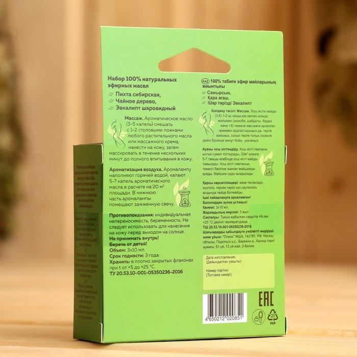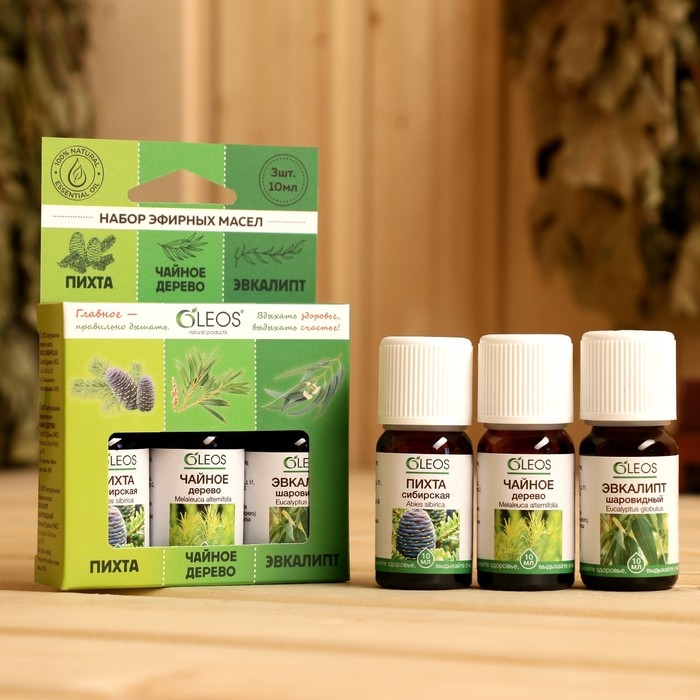 Набор 100% натуральных эфирных масел "Пихта, чайное дерево, эвкалипт"