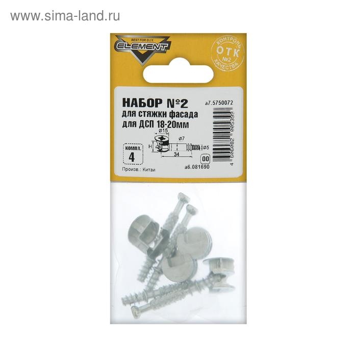 Набор №1 для стяжки фасада для ДСП Element, 16 мм, на блистере, 4 комплекта