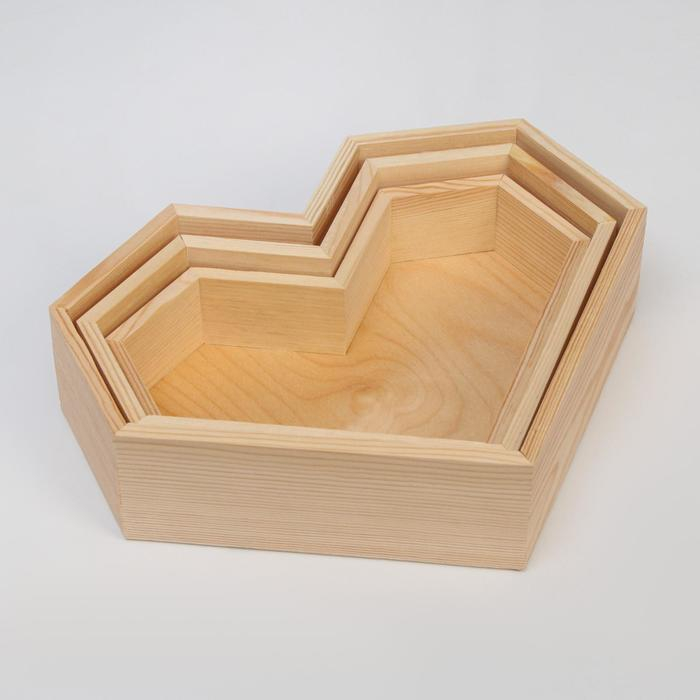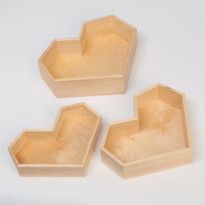 Набор 3 в 1 кашпо деревянных подарочных (29.5×7; 27.5×6; 25×4.5) "Сердце", натуральный