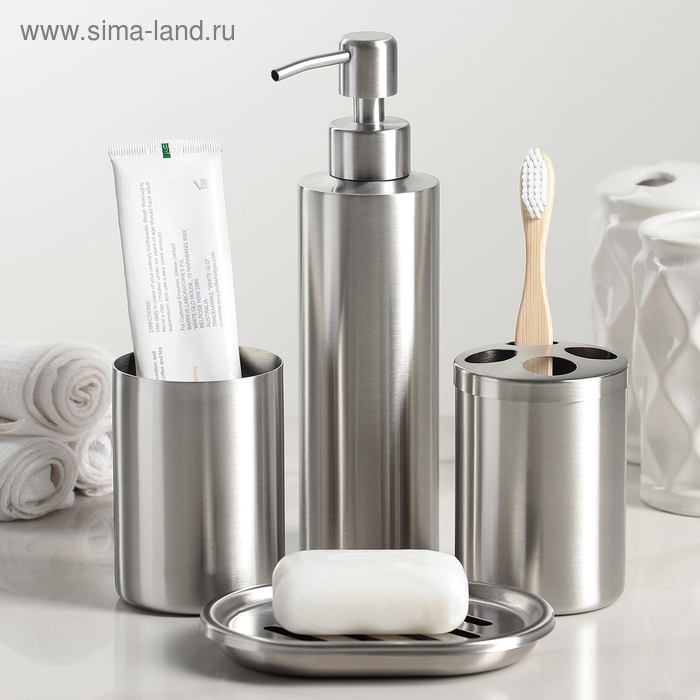 Набор аксессуаров для ванной комнаты, 4 предмета (дозатор, мыльница, 2 стакана)