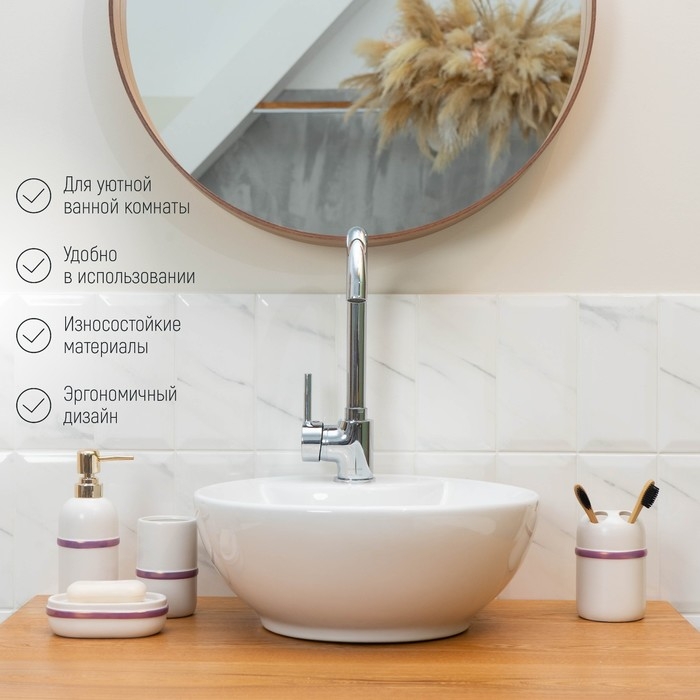 Набор аксессуаров для ванной комнаты Доляна «Изящество», 4 предмета (дозатор 250 мл, мыльница, 2 стакана), цвет белый