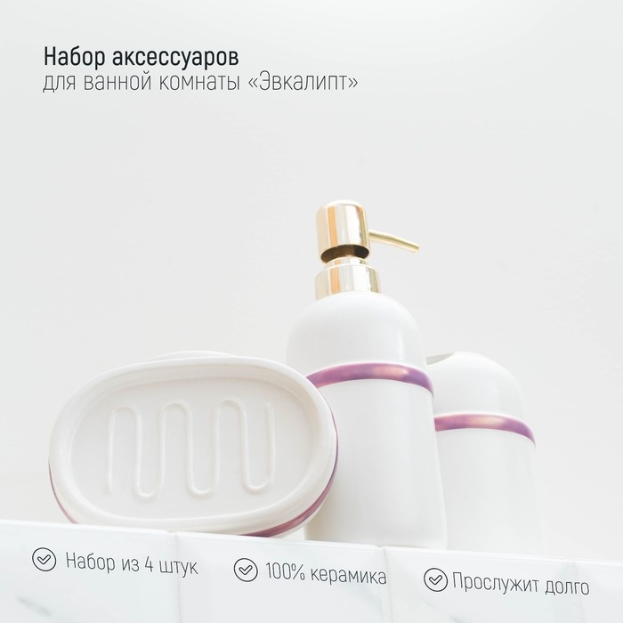 Набор аксессуаров для ванной комнаты «Бурлеск», 4 предмета (мыльница, дозатор для мыла 400 мл, 2 стакана), цвет белый
