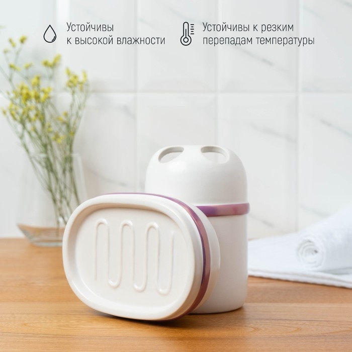 Набор аксессуаров для ванной комнаты «Листва», 2 предмета (дозатор для мыла, стакан), цвет белый