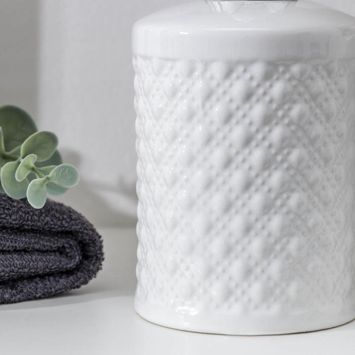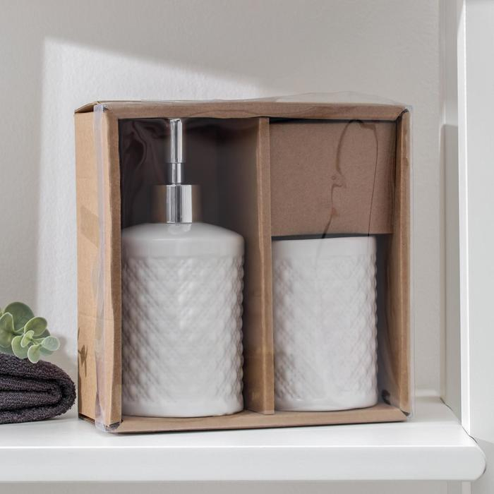 Набор аксессуаров для ванной комнаты Доляна «Изящный барельеф», 4 предмета (дозатор 250 мл, мыльница, 2 стакана), цвет белый