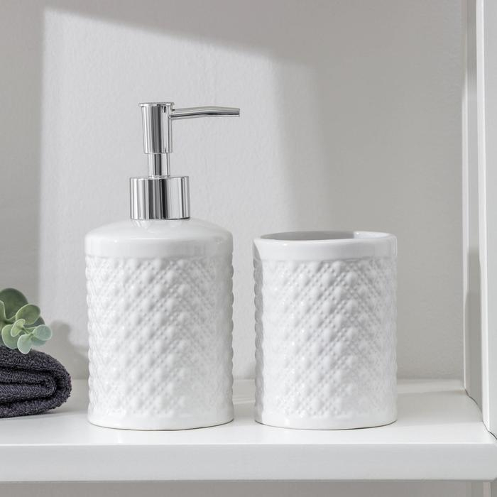 Набор аксессуаров для ванной комнаты «Бусы», 2 предмета (дозатор для мыла, стакан), цвет белый