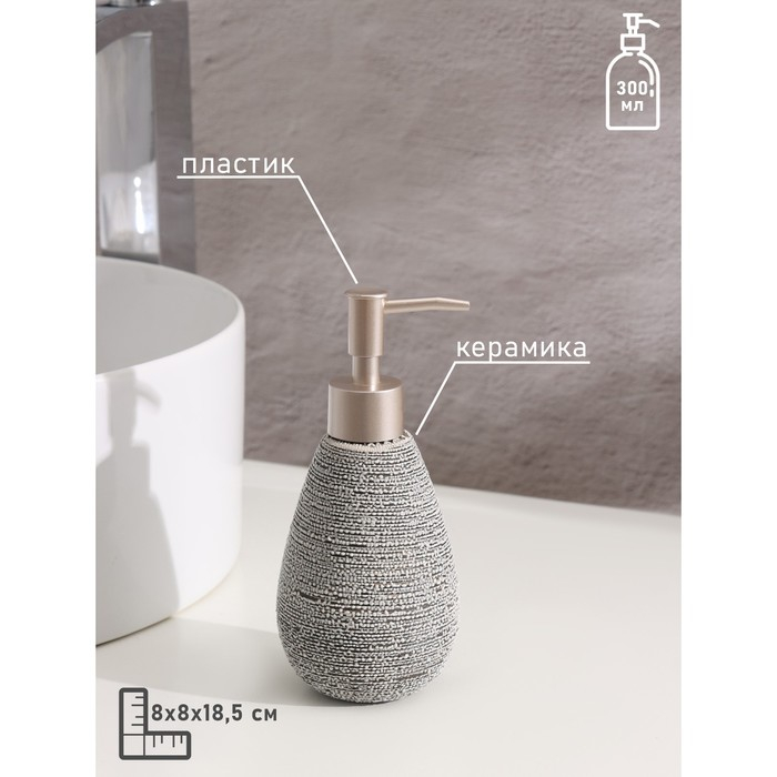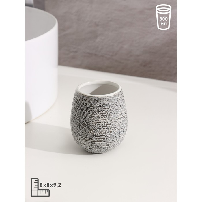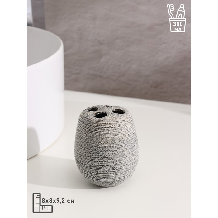 Набор аксессуаров для ванной комнаты Доляна «Камень», 4 предмета (дозатор 300 мл, мыльница, 2 стакана), цвет серый