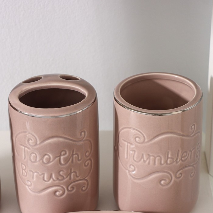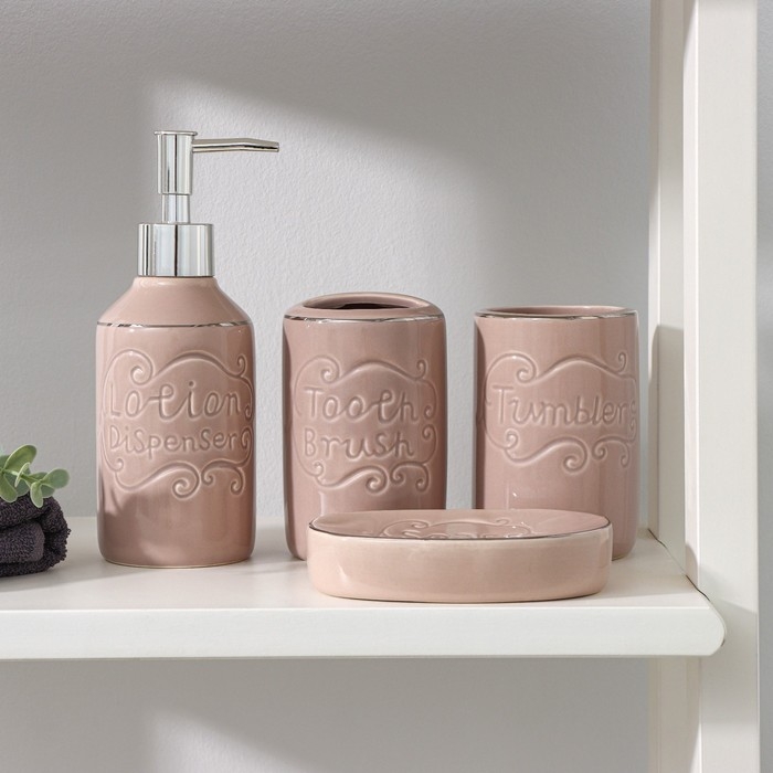 Набор аксессуаров для ванной комнаты Доляна SOUL, 4 предмета (мыльница, дозатор для мыла 350 мл, 2 стакана), цвет бежевый