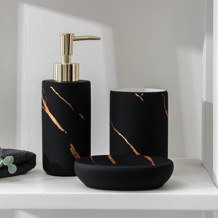 Набор аксессуаров для ванной комнаты Доляна «Зевс», 3 предмета (мыльница, дозатор для мыла, стакан), цвет чёрный