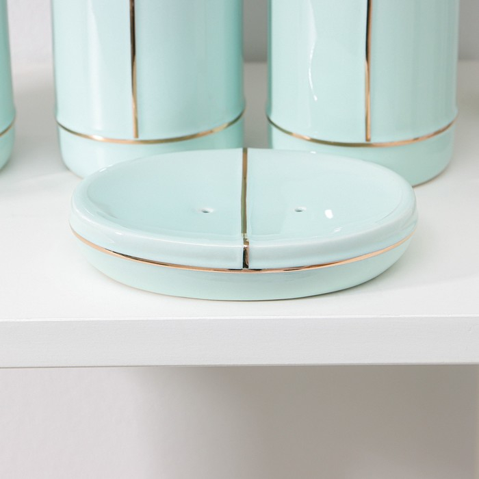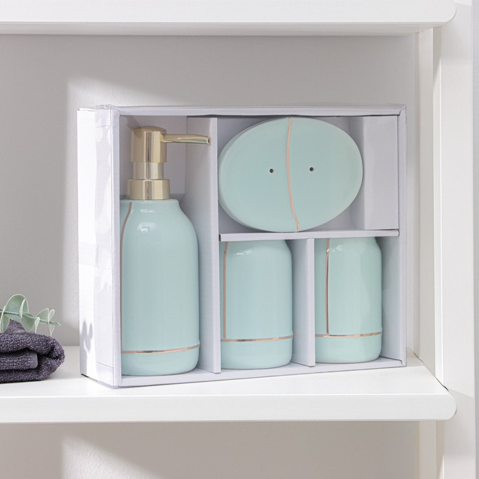 Набор аксессуаров для ванной комнаты «Лайн», 4 предмета (дозатор 400 мл, мыльница, 2 стакана), цвет зелёный