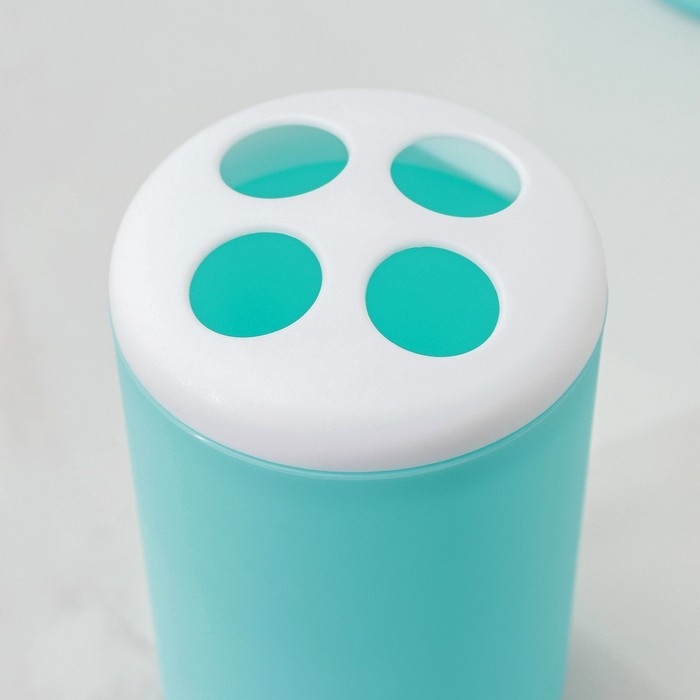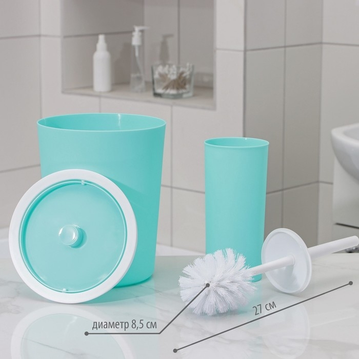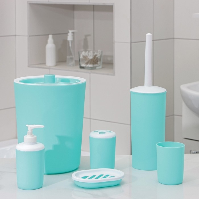 Набор аксессуаров для ванной комнаты «Лайт», 6 предметов (мыльница, дозатор, 2 стакана, ёршик, ведро), цвет бирюзовый