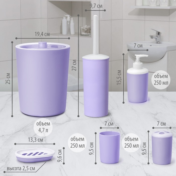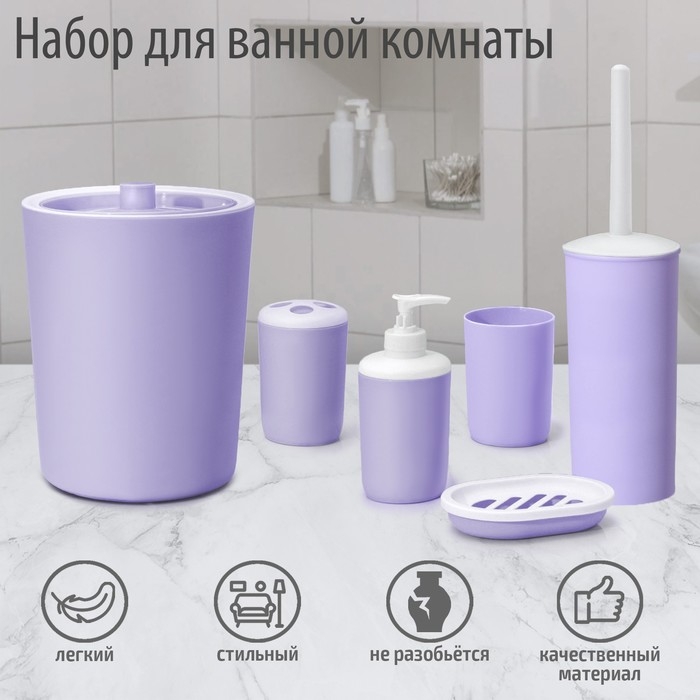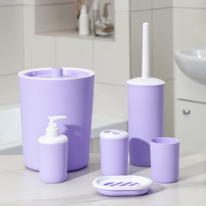 Набор аксессуаров для ванной комнаты «Лайт», 6 предметов (мыльница, дозатор, 2 стакана, ёршик, ведро), цвет сирень