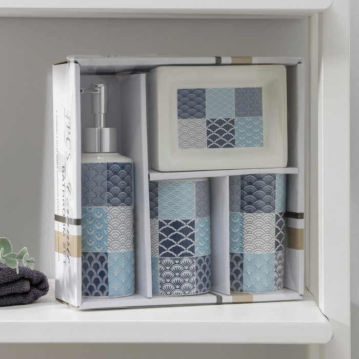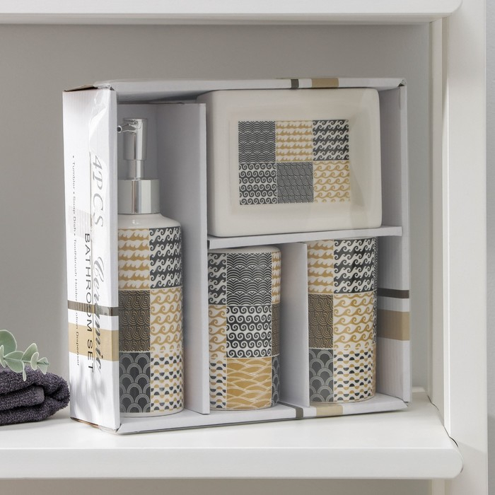 Набор аксессуаров для ванной комнаты «Мозайка», 4 предмета, цвет МИКС