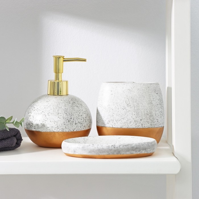 Набор аксессуаров для ванной комнаты «Мрамор», 3 предмета (дозатор 550 мл, мыльница, стакан)