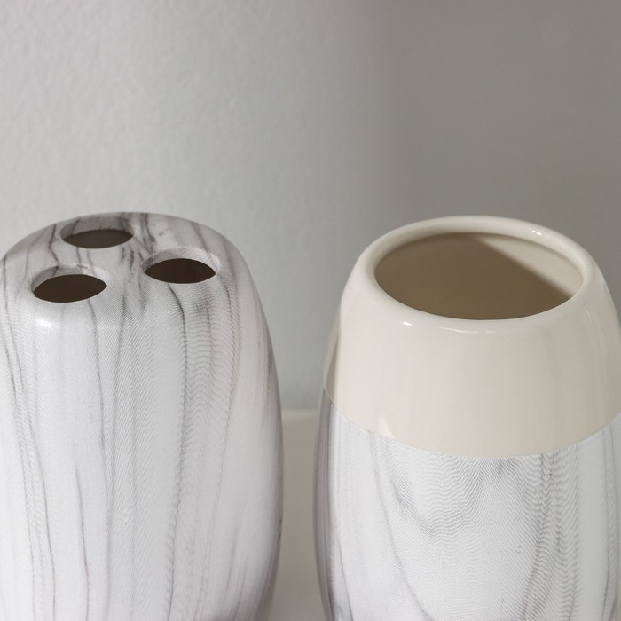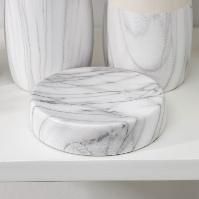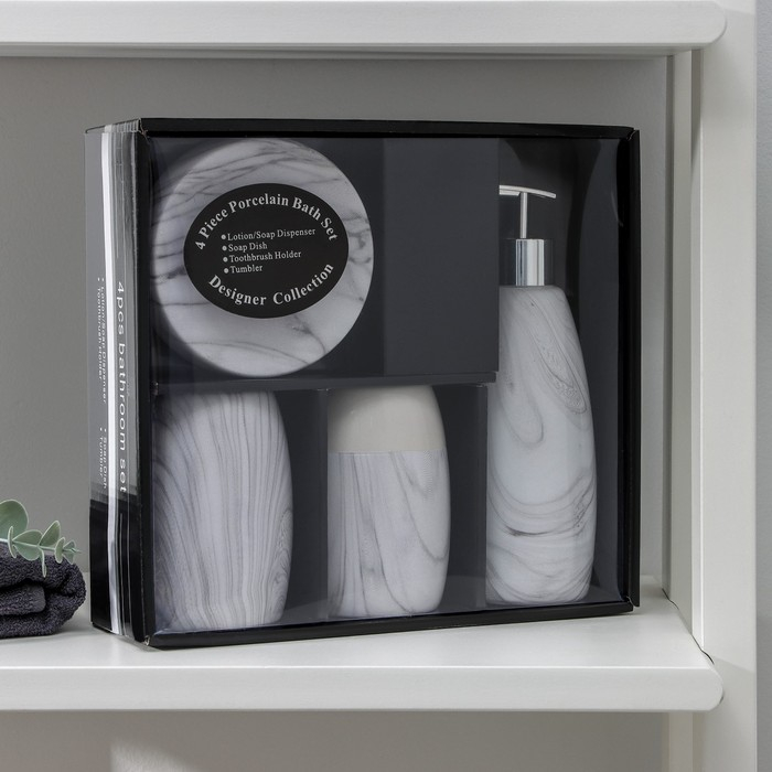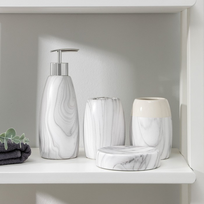 Набор аксессуаров для ванной комнаты «Мрамор», 4 предмета (дозатор 400 мл, мыльница, 2 стакана), цвет белый