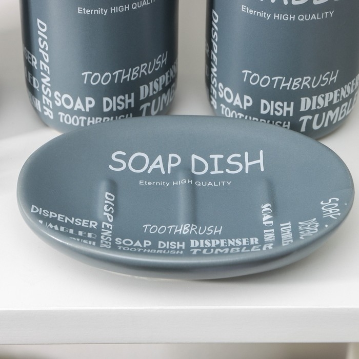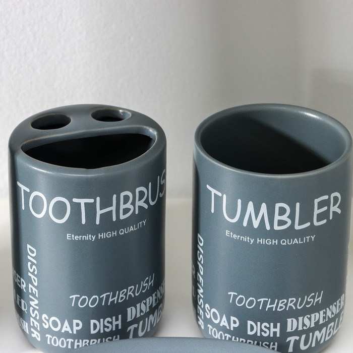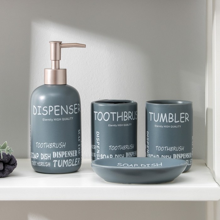 Набор аксессуаров для ванной комнаты «Надписи», 4 предмета (дозатор 400 мл, мыльница, 2 стакана), цвет серый