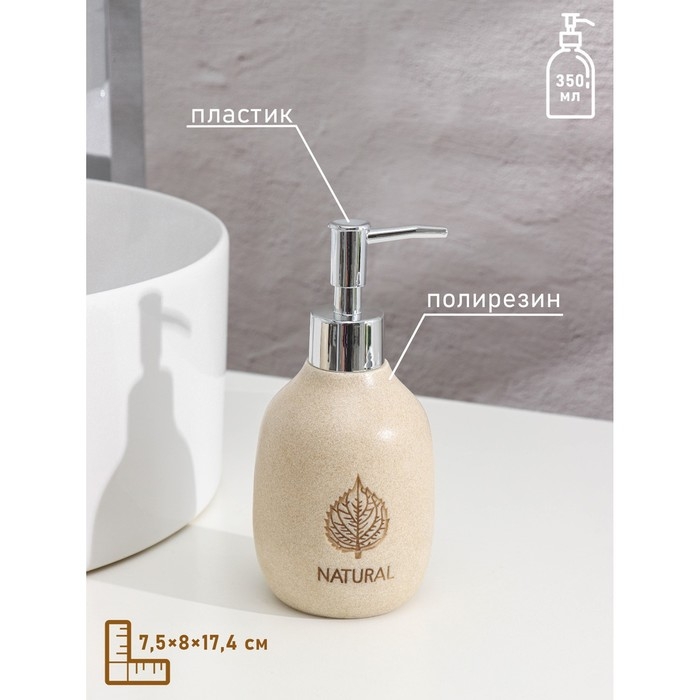 Набор аксессуаров для ванной комнаты Natural, 3 предмета (мыльница, дозатор 350 мл, стакан)