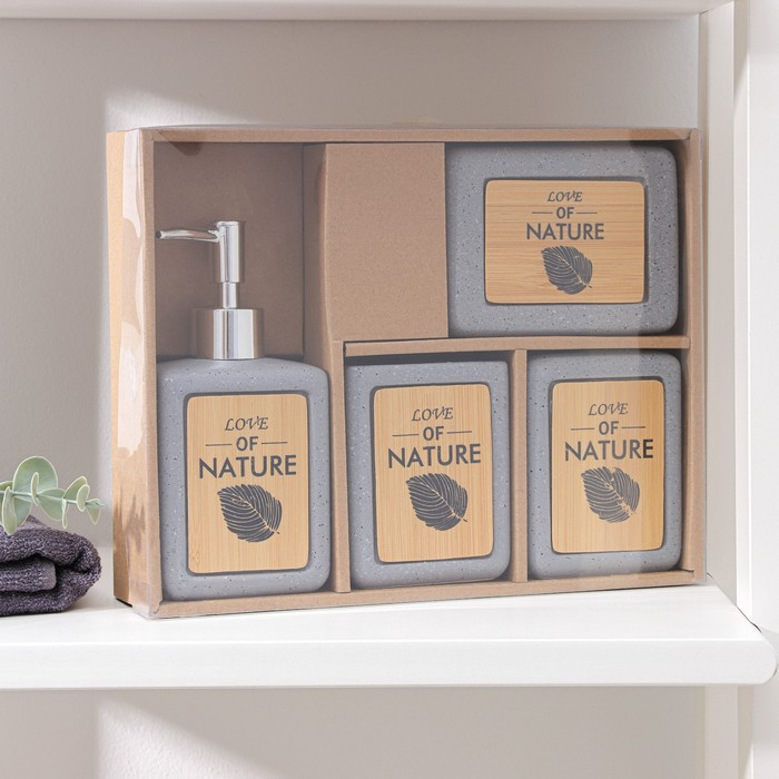 Набор аксессуаров для ванной комнаты Natural, 4 предмета (дозатор 350 мл, мыльница, 2 стакана), цвет серый