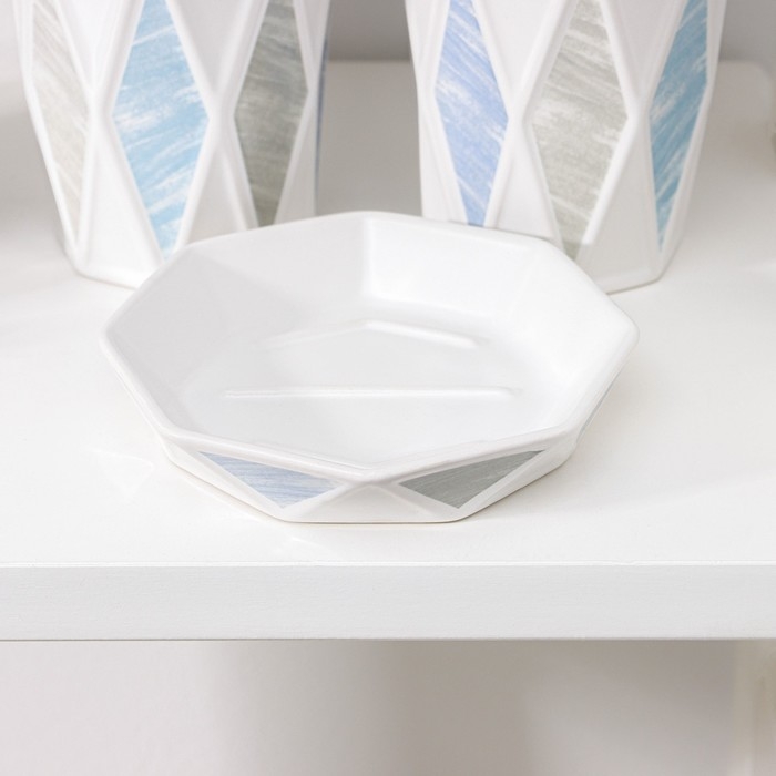 Набор аксессуаров для ванной комнаты SAVANNA «Бэкки», 3 предмета (мыльница, дозатор для мыла 400 мл, стакан), цвет серо-голубой