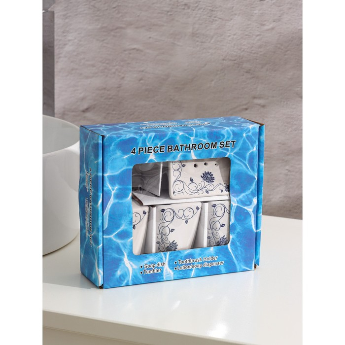 Набор аксессуаров для ванной комнаты «Пейзаж. Сад», 4 предмета (дозатор 250 мл, мыльница, 2 стакана), цвет белый