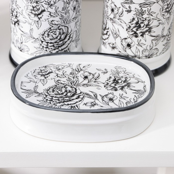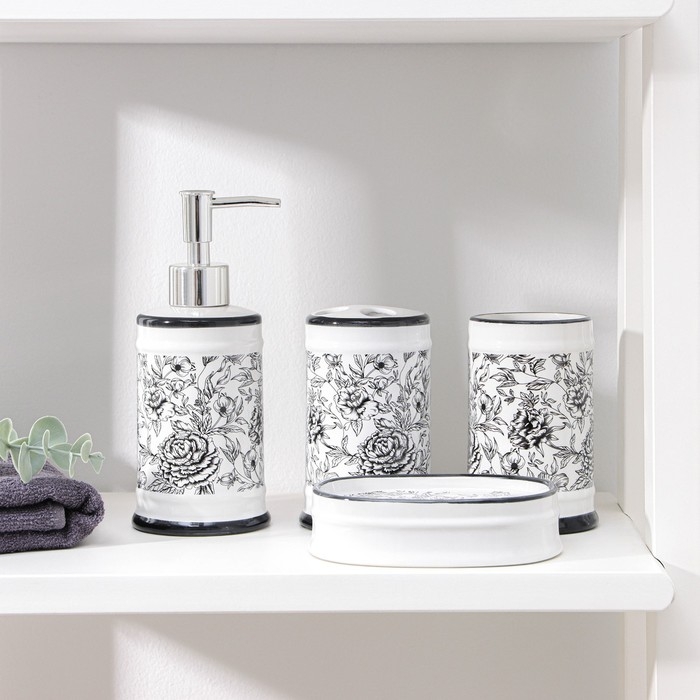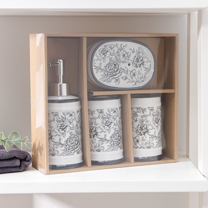 Набор аксессуаров для ванной комнаты «Пионы», 4 предмета (дозатор 300 мл, мыльница, 2 стакана), цвет МИКС