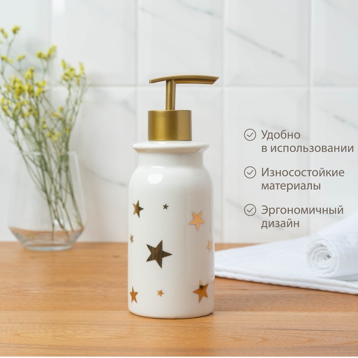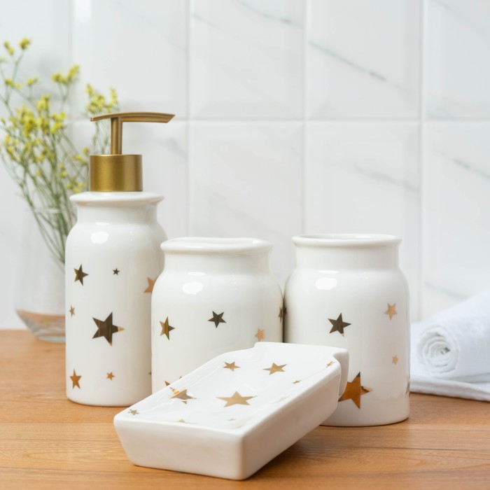 Набор аксессуаров для ванной комнаты «Звёзды», 4 предмета (мыльница, дозатор для мыла 320 мл, 2 стакана 300 мл), цвет белый