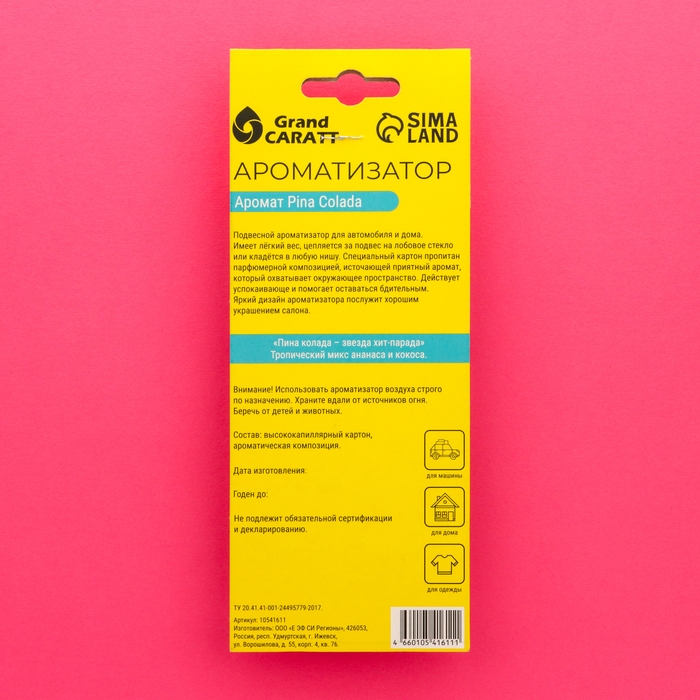 Набор ароматизаторов Grand Caratt PixelFresh, 4 шт: ваниль, баблгам, сакура, пина колада