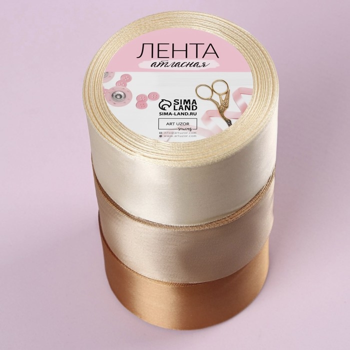 Набор атласных лент, 3 шт, размер 1 ленты: 50 мм × 23 ± 1 м, цвет бежевый спектр